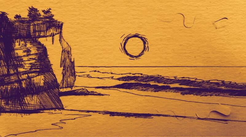 "Sunset Hill" ink on paper. 2026 . Rhiannon Lee Chaston.